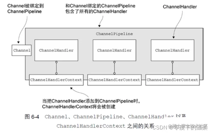 ChannelHandler随ChannelHandlerContext对象一起提供。ChannelHandler应该通过上下文对象与其所属的ChannelPipeline进行交互。使用上下文对象,ChannelHandler可以在上游或下游传递事件,动态修改管道或存储特定Handler处理程序的信息(使用AttributeKeys)。