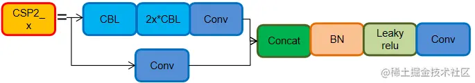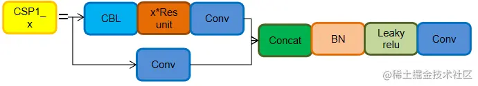 CSP1_X 由 CSPNet 演变而来,该模块由 CBL 模块、Res unit、Conv、还有 Concate 组成,其中X代表有X个这个模块。
