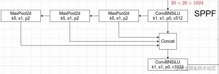 - 新版的 YOLOv5 中使用的是升级版的 SPP结构,SPPF。它是将原本并行的 MaxPool 替换成了串行 MaxPool。其中串行两个 5 x 5 大小的 MaxPool 和一个 9 x 9 大小的 MaxPool 是等价的,而串行三个 5 x 5 大小的 MaxPool 层和一个 13 x 13 大小的 MaxPool 是等价的。并行和串行的效果一样,但串行的效率更高。