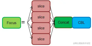 Focus 模块,输入通道扩充了4倍,作用是可以使信息不丢失的情况下提高计算力。Focus 是在 YOLOv5 中提出来的,它先将特征图进行分块切片操作,然后再将结果 Concat 起来,再送入后面模块。