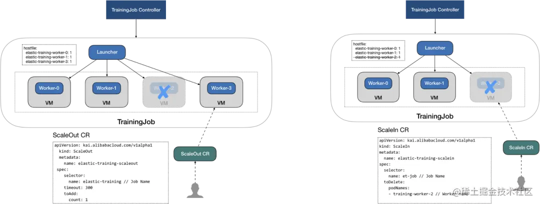 值得注意的是,弹性深度学习训练除了需要资源弹性能力外,还需要计算引擎和分布式通信框架的支持,还要算法、数据切分策略、训练优化器等多方面共同配合优化(找到最佳的方法保证 global batch size 和 learning rate 的适配),才能保证模型训练的精度目标和性能要求。目前业界还没有通用的手段,在普遍的模型上实现强复现的弹性训练。在一定约束下(模型特征,分布式训练方法,资源规模以及弹性幅度等),比如 32 卡GPU以内的 ResNet50,BERT 使用 Pytorch 和 Tensorflow 都有稳定的方法实现满意的弹性训练收益。