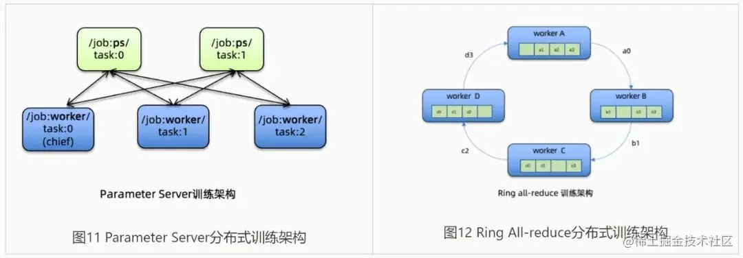 AI 分布式训练是典型的批量任务类型。用户提交的一个训练任务(Job),在运行时一般会由一组子任务(Task)共同运行才能完成。不同AI训练框架对子任务分组有不同的策略,比如 Tensorflow 训练任务可以采用多个 Parameter Servers 子任务 + 多个 Workers 子任务的分组,Horovod 运行 Ring all-reduce 训练时,采用一个 Launcher + 多个 Workers 的策略。