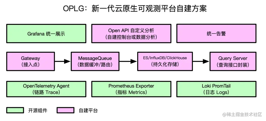 虽然 OPLG 体系具有多种优势,但是企业自建也会面临多重挑战,特别是在深度使用的过程中,许多规模化运维、性能、成本等非功能性问题将逐渐凸显。