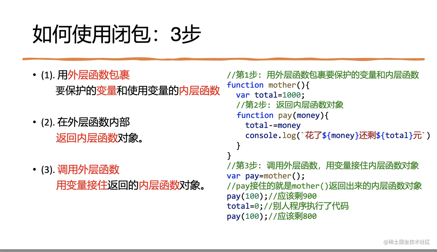 - 今后:只要希望给一个函数,保存一个即可反复使用,又不会被 外界污染的专属局部变量时,就用闭包