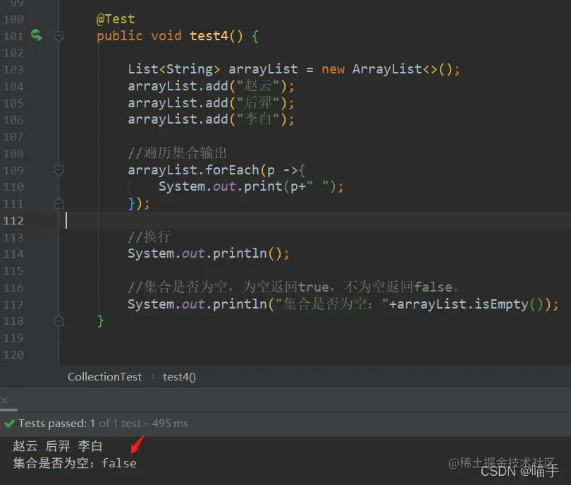 System.out.println("集合是否为空:"+arrayList.isEmpty());
