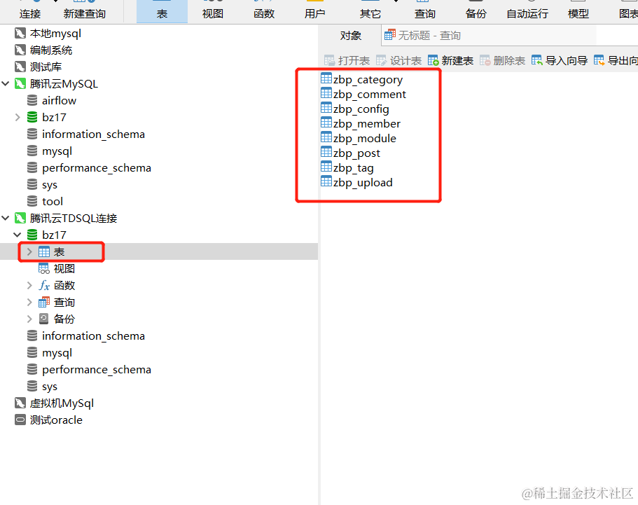查看数据表是否成功,可以看到都有数据导进去了