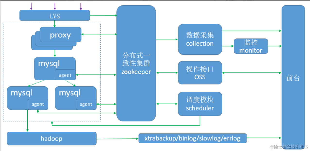 | HDFS | 冷备存储模块 | 备份binlog/slowlog/errlog |