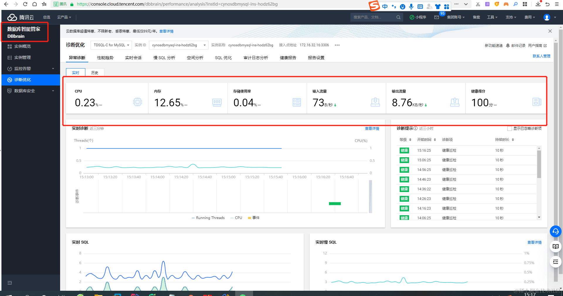 2)平台里面还有个数据库智能管理,可以实时监控数据的使用情况,机器异常一看就知道什么问题