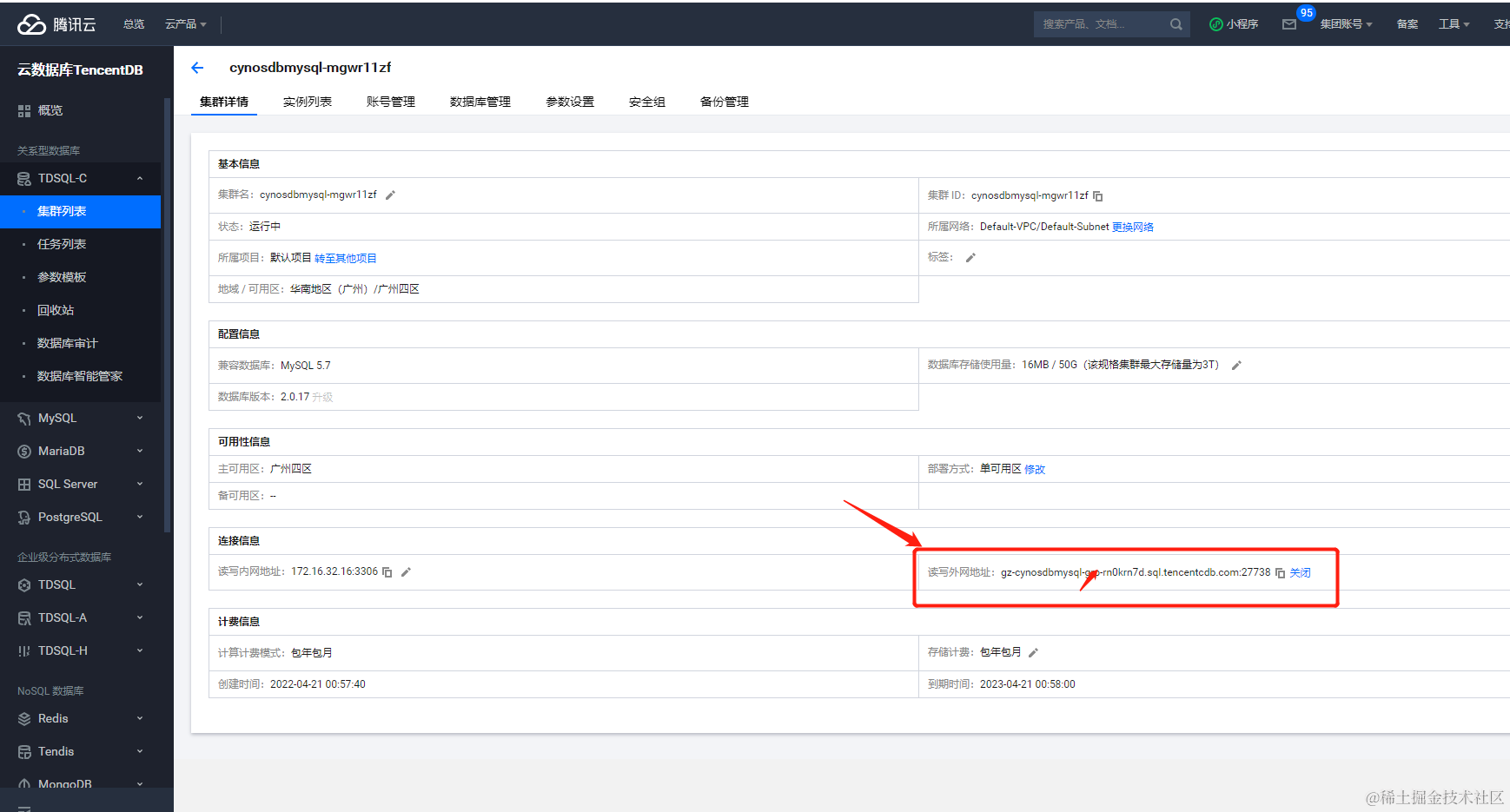 1)进入腾讯云的后台可发现,这个数据库是自带备份功能的,对数据安全有保障