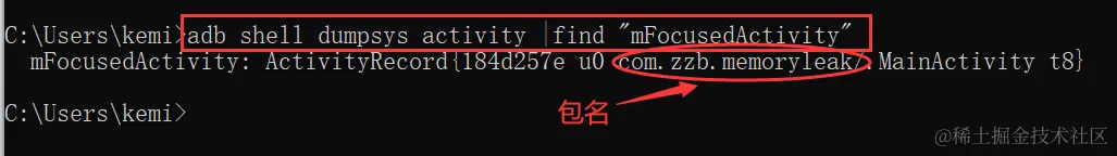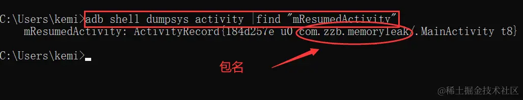 adb shell dumpsys activity |find "mResumedActivity" 查看前台应用包名,适用于 Android 8.0 以上,必须先启动 app