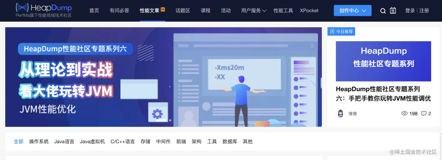 在这个趋势下,HeapDump性能社区出现了,它是笨马网络旗下国内首个垂直于性能领域的开发者社区,致力于帮助更多开发者们了解性能调优,诊断性能问题,从而能给用户提供更好的应用服务。