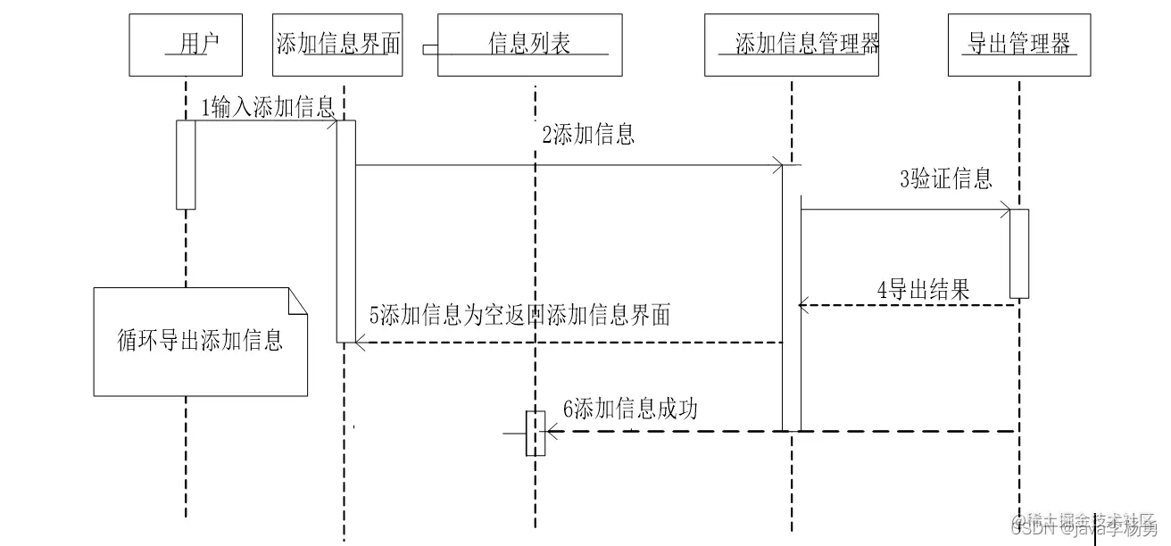 添加信息模块顺序图: 管理员以及其他用户登录后均可进行添加信息操作,添加信息模块顺序图