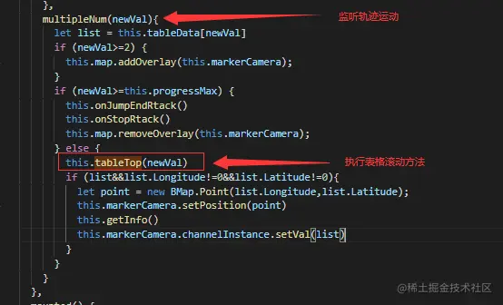 3)当地图上的点位运动后会传入下标执行tableTop函数,表格就会自动滚动到对应的列。