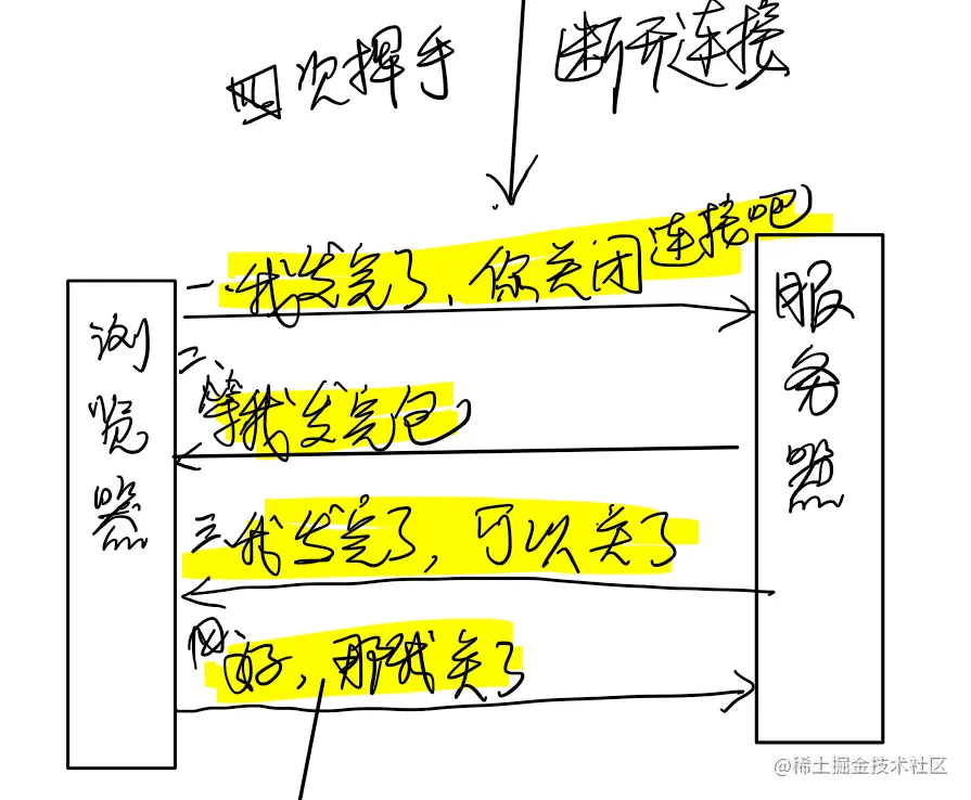 关闭TCP连接时会发生:四次挥手(four-way handshake)