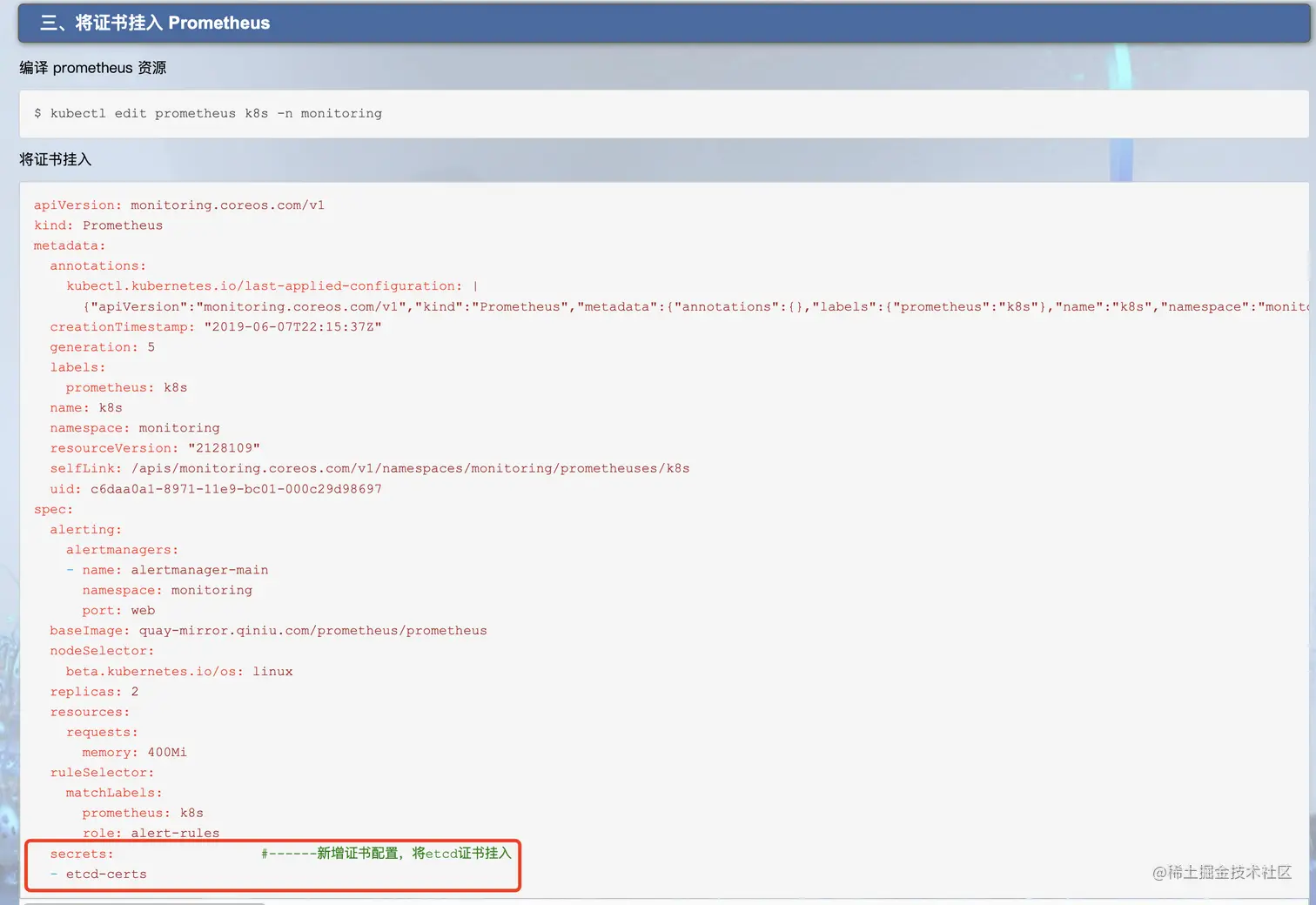 - 生成用于抓取 Etcd 数据的 ServiceMonitor