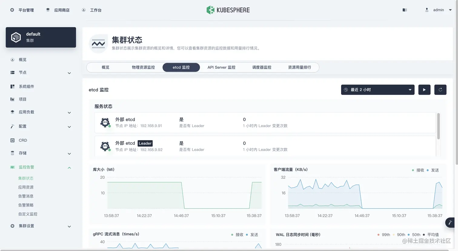 经研究发现,KubeSphere 自带的集群状态监控中有 Etcd 监控的页面展示,但是在 KubeSphere3.2.1 版本中,默认配置开启 Etcd 监控后,集群状态中的 Etcd 监控页面确实没有任何数据。本文将记录里解决该问题的排障之旅。