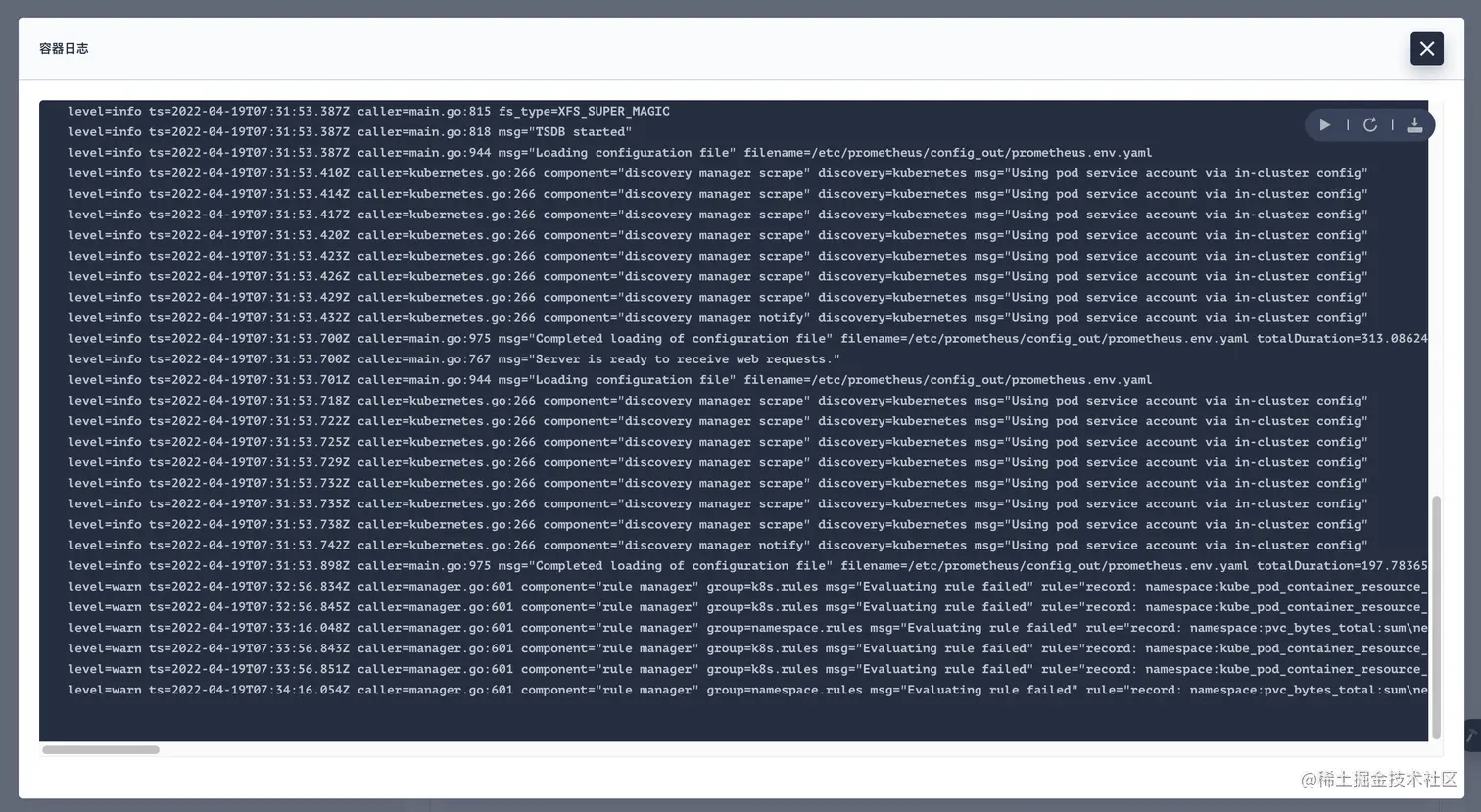 虽然前面配置开启了,但是此时监控数据并不存在。同时,检查 prometheus-k8s 的 Pod 会发现如下报错。