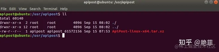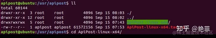 2-2、进入解压后的目录:ApiPost-linux-x64,