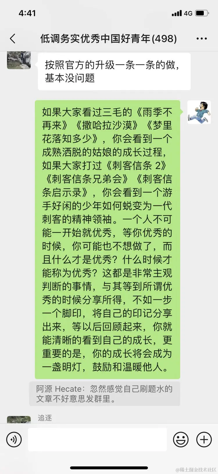 最后,在我的群里,曾经有同学担心发文章很水,于是我写了这样一段简短的回复: