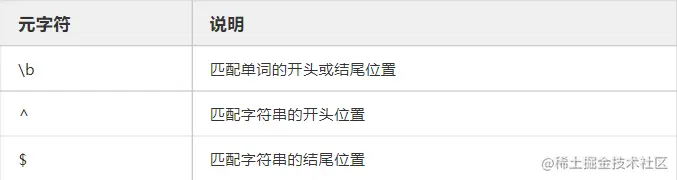 除了这三个元字符表示位置外,还有零宽断言、负向零宽断言也表示位置,后续会详细介绍。