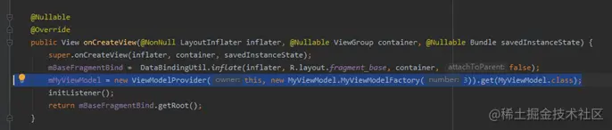 3、由于不能直接通过构造函数实例化ViewModel,故不能直接通过带参构造函数对ViewModel中数据进行初始化,此功能可通过自定义factory实现