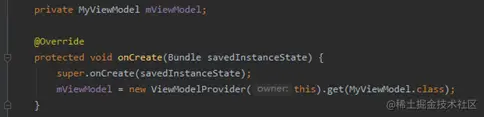 2、简单实现ViewModel,因为需要和Activity绑定,所以不可直接通过构造函数实现,需要通过ViewModelProvider来实现。