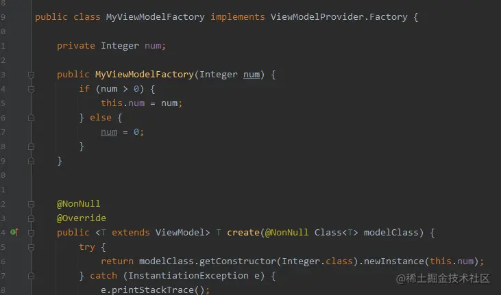 2、如果不指定Factory,则会默认执行最简单的Factory进行ViewModel的实例化,无法对ViewModel实例化的时候进行数据的初始化设置,想要实现此功能,可以自己声明指定一个Factory,重写内部的create方法则可。自定义的Factory可以继承ViewModelProvider.Factory类或者ViewModelProvider.KeyedFactory类都可,两者内部方法有细微差别,此处不做深入讨论。