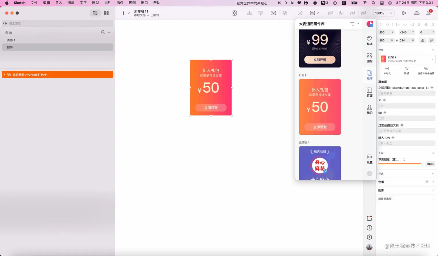 将Sketch设计稿中选中的图层导出为选定的语言类型的代码,比如GaiaX模板、React、Rax、Vue、小程序等,导出的代码布局方式基于盒子模型布局(Flexbox)和绝对布局(Absolute);对于节点的层级,【导出代码】会在导出的过程中进行不断的优化,使层级尽可能的少且合理