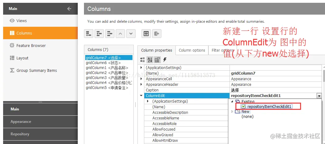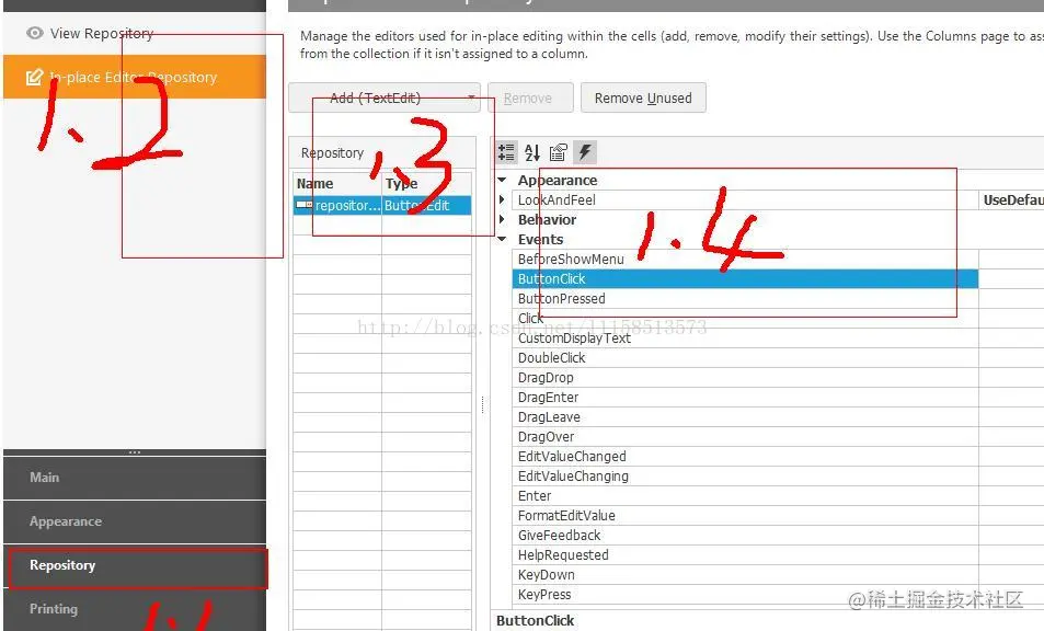 打开ColumnEdit 选择new ButtenEdit new上方会出现一个系统命名的button