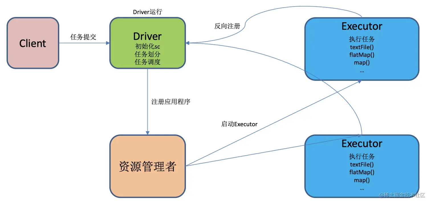- TaskScheduler:将任务(Task)分发给Executor。