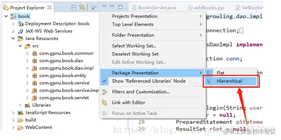 Eclipse显示分级目录结构以及创建包中包 健康搬砖人 2022-04-24 197 阅读1分钟 本文已参与「新人创作礼」活动,一起开启掘金创作之路。 1.设置显示分级目录结构 打开Eclipse,找到这个倒三角 找到Package Presentation设置为Hierarchical 2.再打开目录,发现已经显示分级了 3.创建包中包 在src目录右键创建一个包 然后在test包下右键,先创建一个类,再创建一个包 完成