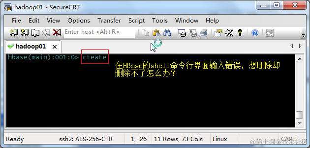 在HBase的shell命令行界面输入错误项按"退格键"删除,却怎么也删除不了: