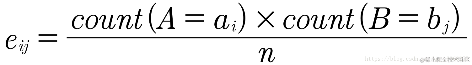 是(Ai,Bj)的期望频度,可以用下式计算: