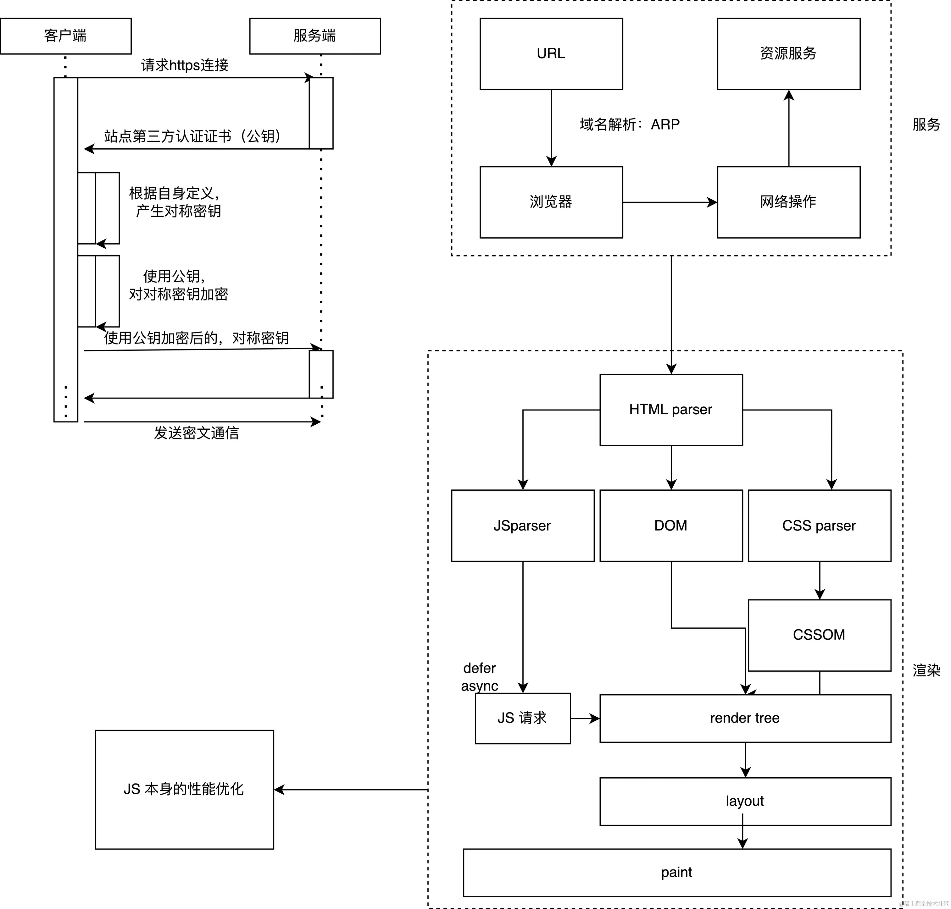 浏览器执行顺序 主线:HTML => DOM + CSSOM => renderTree + js => layout => paint 支线: repaint(重绘) - 改变文本、颜色等 展示 reflow(重排或回流) - 元素几何尺寸变了