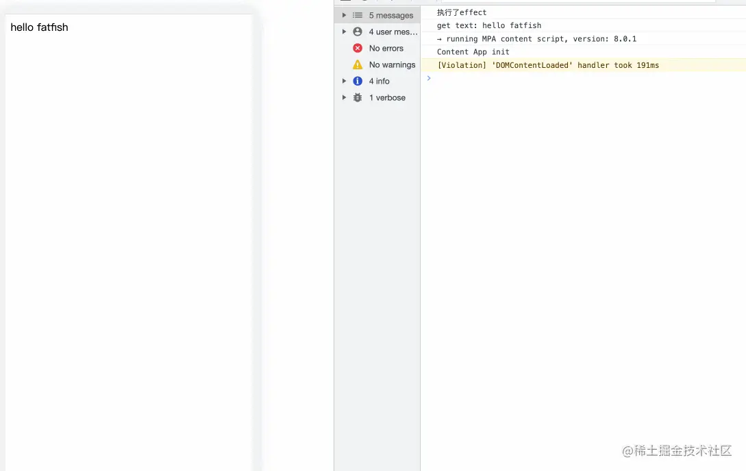 可以看到我们给state新增了一个属性text但是effect并不会被执行,修改了name属性为juejin之后才被执行了,而视图层也更新了。
