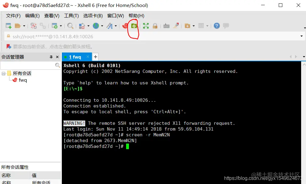 然后在这个会话中执行你想运行的程序,然后关闭连接。 重新连接,输入screen -r 会话名(如上面的helloworld)恢复之前离开的会话。可以看到程序仍在运行。