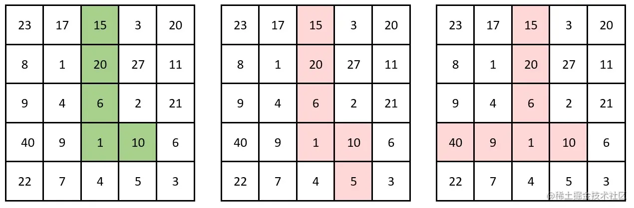 Input: grid = [[23,17,15,3,20],[8,1,20,27,11],[9,4,6,2,21],[40,9,1,10,6],[22,7,4,5,3]]