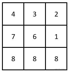 Input: grid = [[4,3,2],[7,6,1],[8,8,8]]
