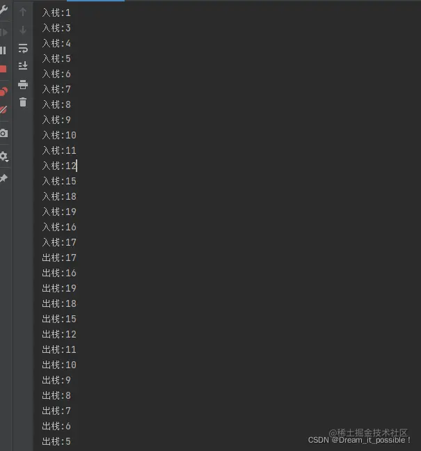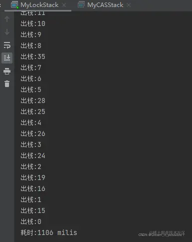 发现入栈的顺序并不是按照i的递增进行入栈的, 因为出现竞争锁的情况!