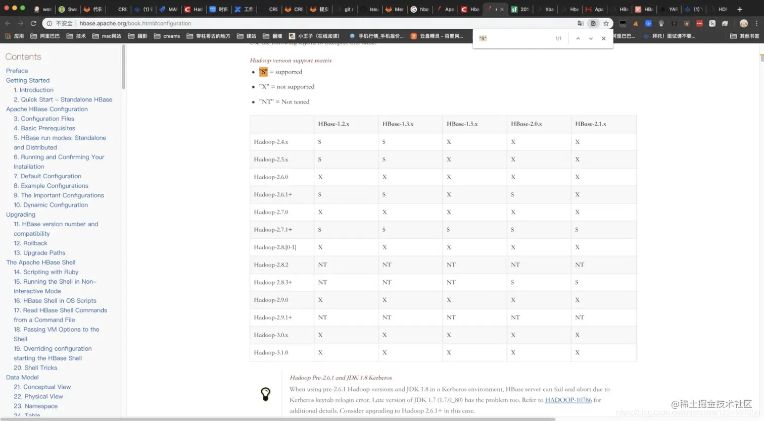 进入hbase下载页面,选择与hadoop版本相兼容的hbase版本。在这个页面使用ctrl+f搜索"S", 然后下面有一个表就是hbase与hadoop版本对应关系: