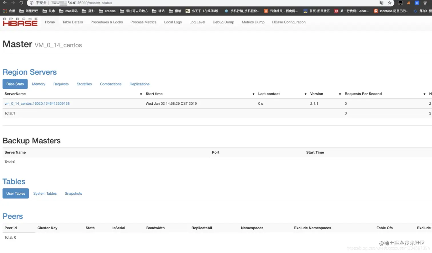 另外访问:16010能看到HBase的管理页面: