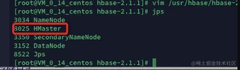 运行bin/start-hbase.sh,如果运行成功,使用jps命令可看到HMaster进程启动成功:
