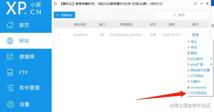 证明PHP已经成功的在本地端口创建了网站,而我们对WordPress的设置,也可以使用这个方式。首先找到PHPStudy网站的根目录(此处存放着网站显示的各项内容)