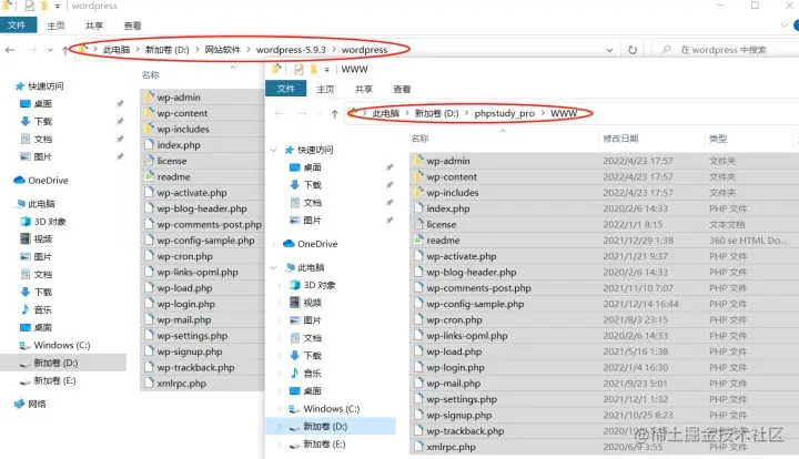 我们只要将WordPress的文件,替换掉这个文件夹里的文件,就能显示WordPress的页面。当然,为了保险起见,我们可以先将这个文件夹中的文件删除,再复制WordPress至此。