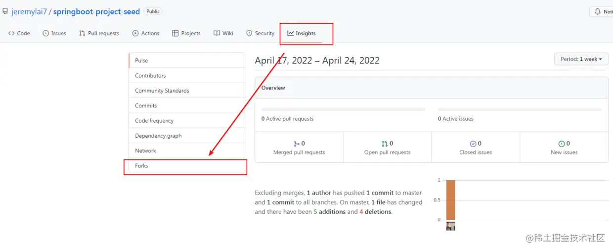 以 github.com/jeremylai7/… 为例,点击 Insights —> Forks