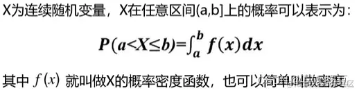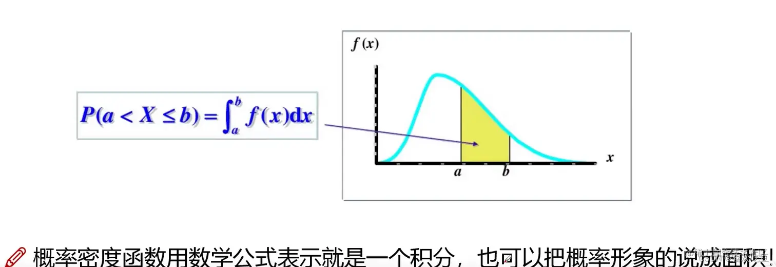 概率密度:对于连续型随机变量X,我们不能给出其取每一 个值的概率也就是画不出那个分布表,这里我们选择使用密度来表示其概率分布!