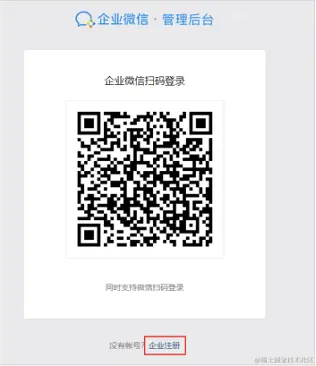 点击企业登录可以进入登录页面,在页面可以扫码登录和企业注册。
