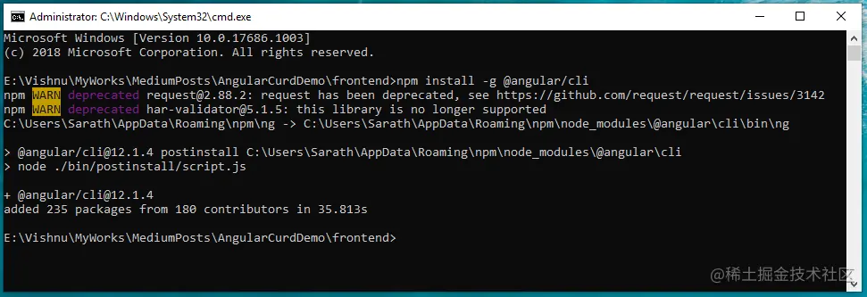 你的Angular项目已经安装好了,现在进入项目目录。