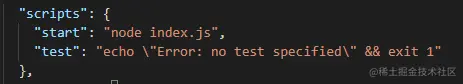 "start": "node index.js"