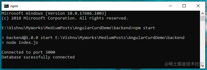 我们已经使用Node、Express和MongoDB设置了我们的MEAN Stack后端。让我们通过以下命令启动服务器